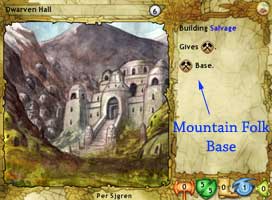 Note that not all buildings that are bases give you domain and not all buildings that give you domain are bases. You see here that the Exhausted Mine is a Mountain Folk base but doesn't give you Mountain Folk domain. Whereas, this Hadarck's Thrown gives you Mountain Folk domain but isn't a base.
